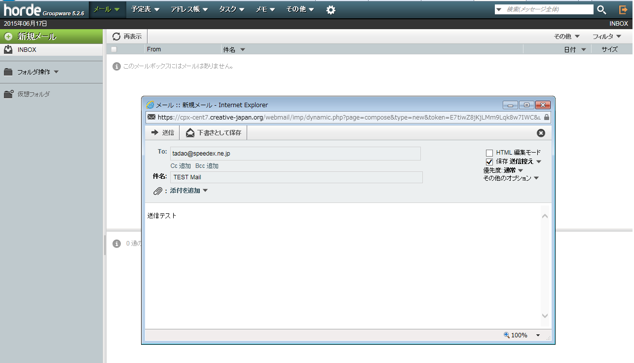 https://[SERVERNAME].creative-japan.org/webmail/ にアクセスすると Horde のログインページが開きます。