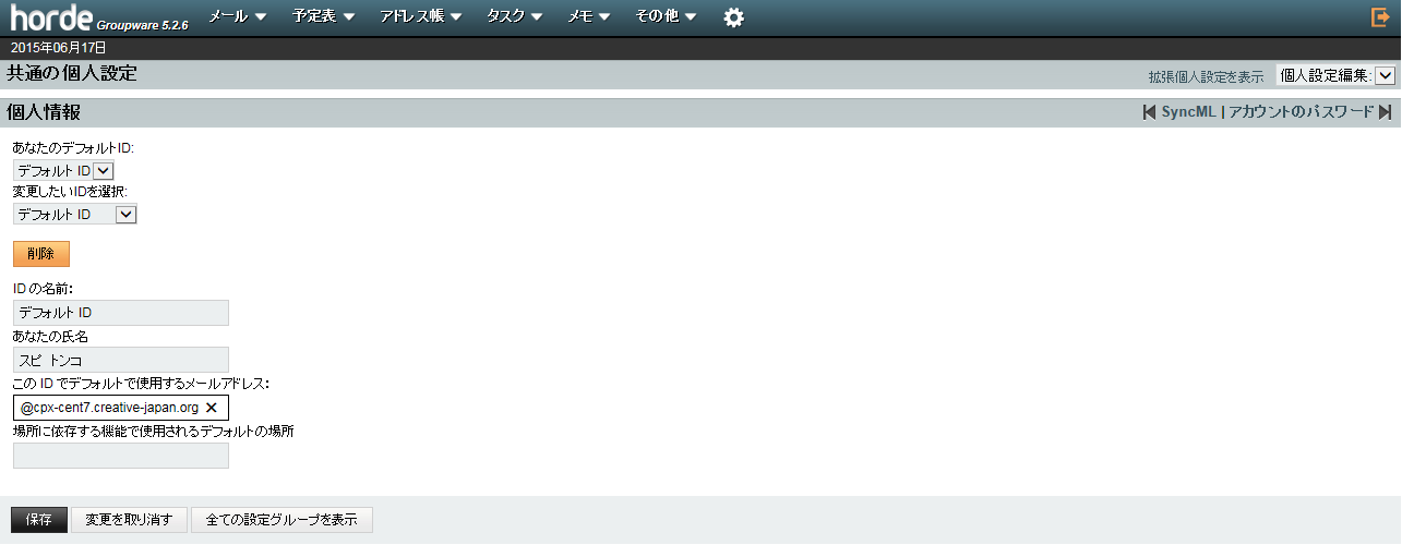 「このIDでデフォルトで使用するメールアドレス」欄にこのサーバーで利用できるメールアドレスを入力します。