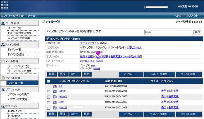 3.4 ファイルプロパティ欄に表示されているファイルのコピーの場合は、ファイルプロパティ欄のコピーをクリックします。ディレクトリコンテンツ欄でチェックマークを入れたファイルのコピーの場合は、ディレクトリコンテンツ欄のコピーをクリックします。